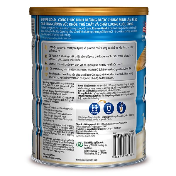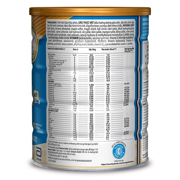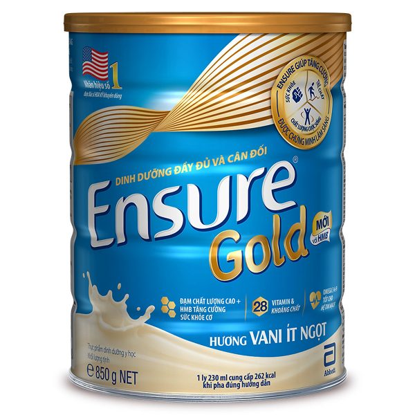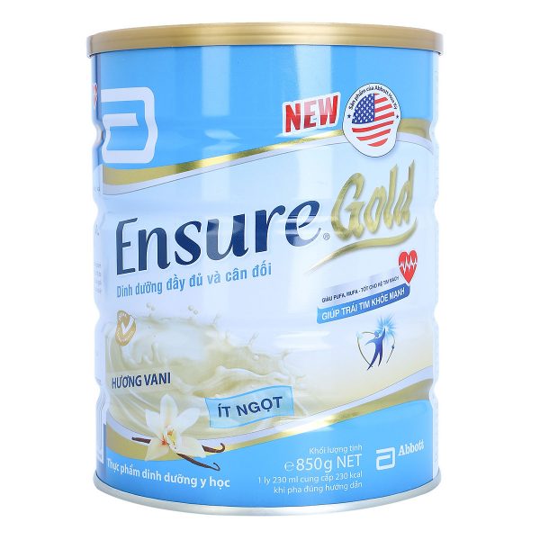 - Sữa Bột Abbott Ensure Gold Vani Ít Ngọt 850g được đặc chế với hỗn hợp chất béo giàu PUFA, MUFA rất tốt cho hệ tim mạch. Sữa cũng cung cấp các acid béo thiết yếu như Linoleic và Linolenic, hàm lượng acid béo no và Cholesterol thấp phù hợp với chế độ ăn lành mạnh hằng ngày của bạn.